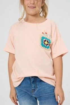 Angel & Rocket Pink Blaire Crochet Pocket T-Shirt