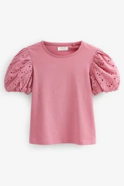Next Broderie Puff Sleeve T-Shirt (3-16yrs)