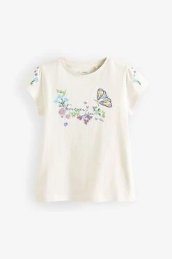 Next Ecru White Embroidered Floral Butterfly T-Shirt (3-16yrs)
