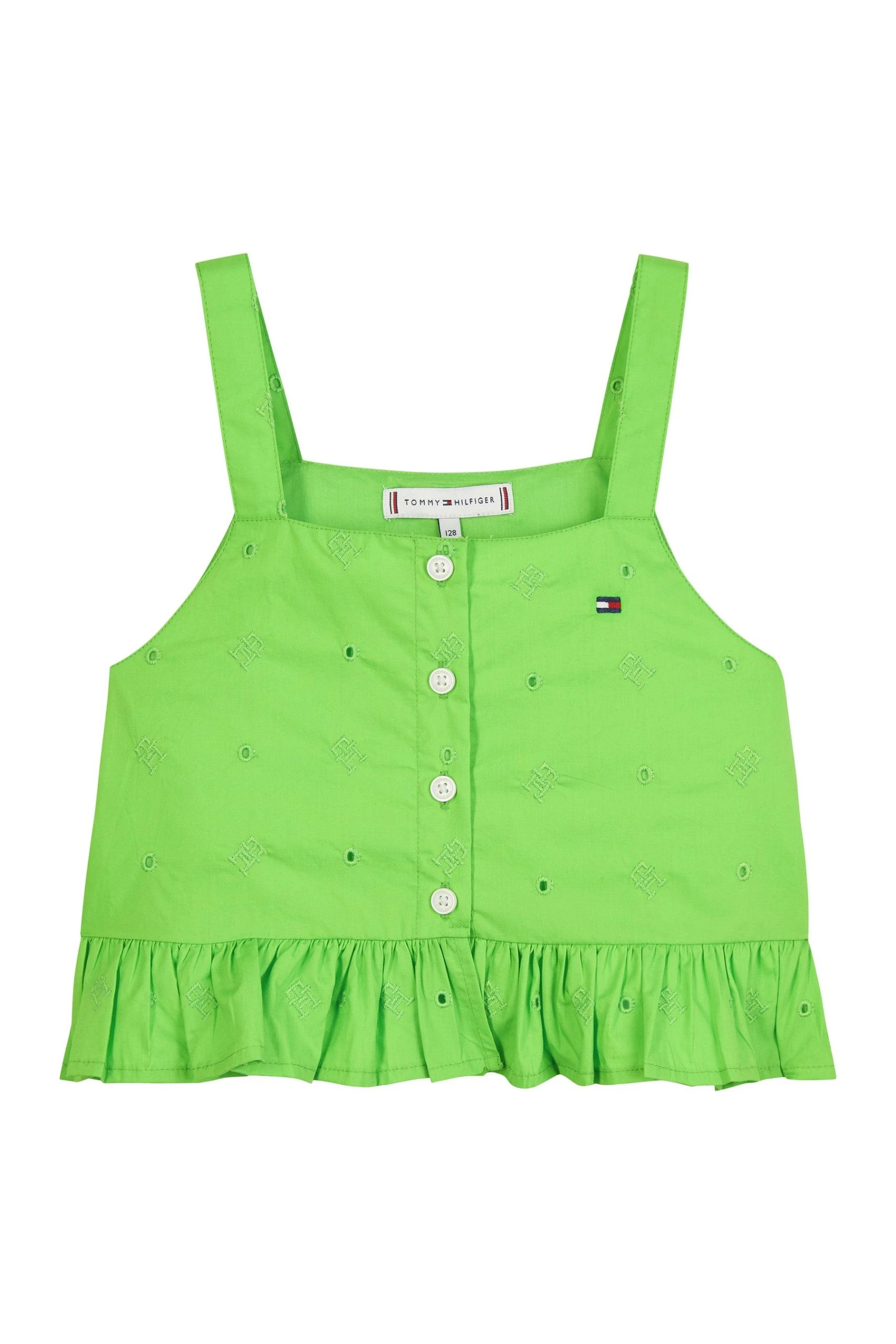 Made from 100% organic cotton, this anglaise top from Tommy Hilfiger is sure to become a new favourite for your little one this season. Designed with a subtle all-over TH Monogram design and button detailing.