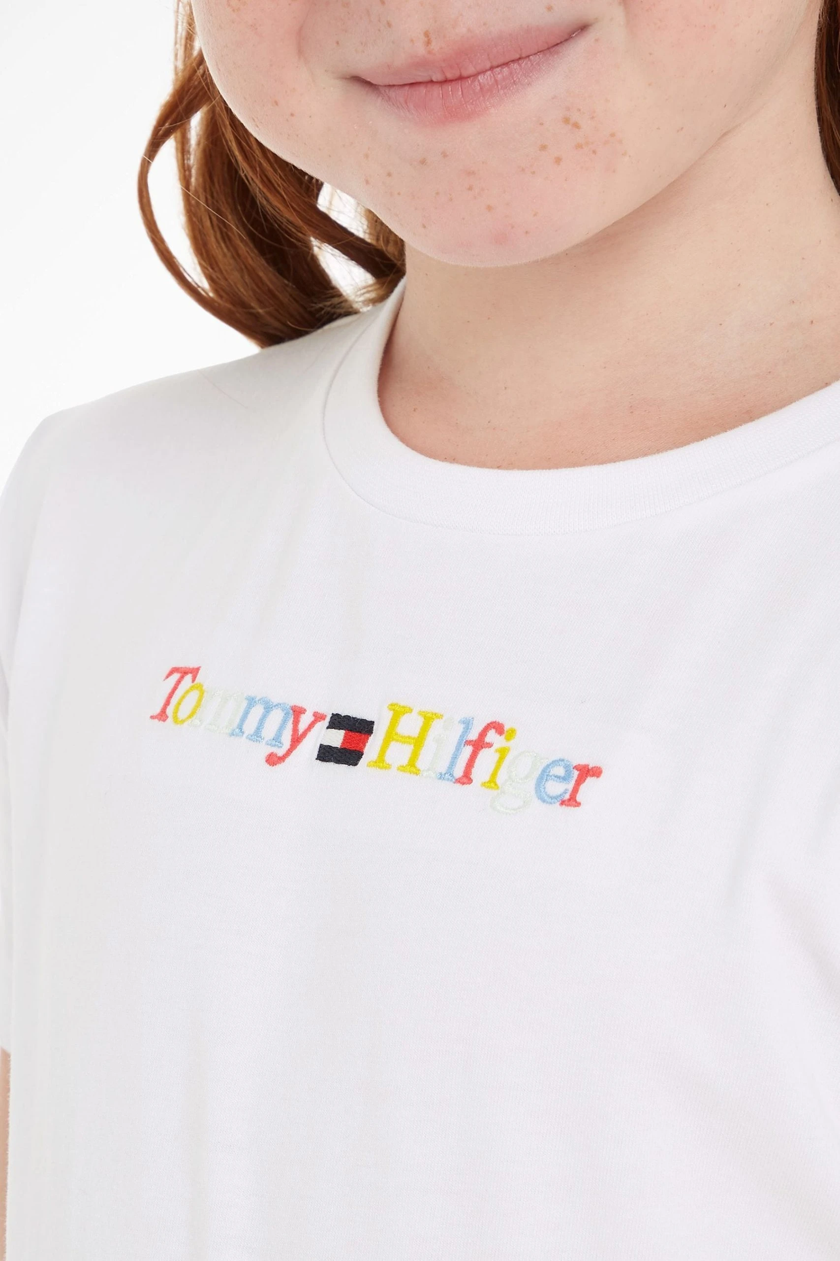 Made from a cotton blend with added elastane for a comfortable wear, this t-shirt from Tommy Hilfiger is a great addition to your little one s wardrobe. Featuring a crew neckline with short sleeves and finished with a fun graphic Tommy branding on the chest.