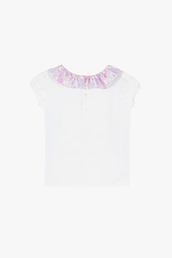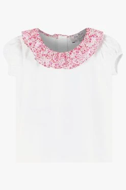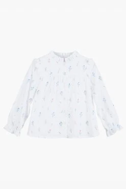 Trotters London Francis Floral Ruffle Cotton White Blouse