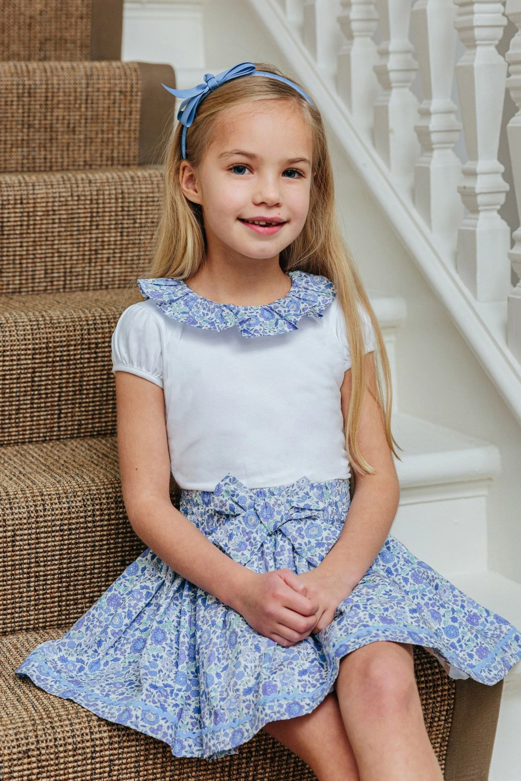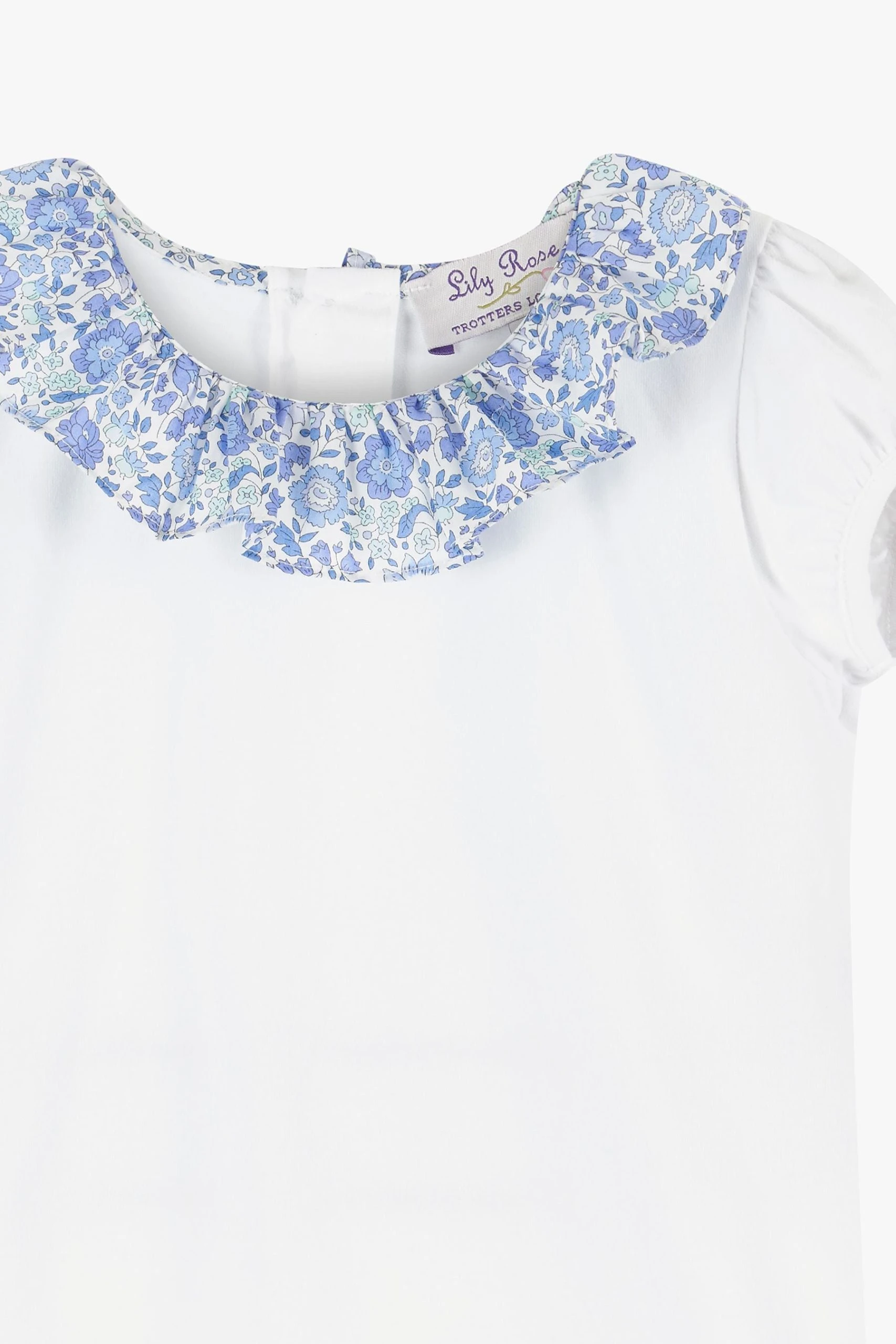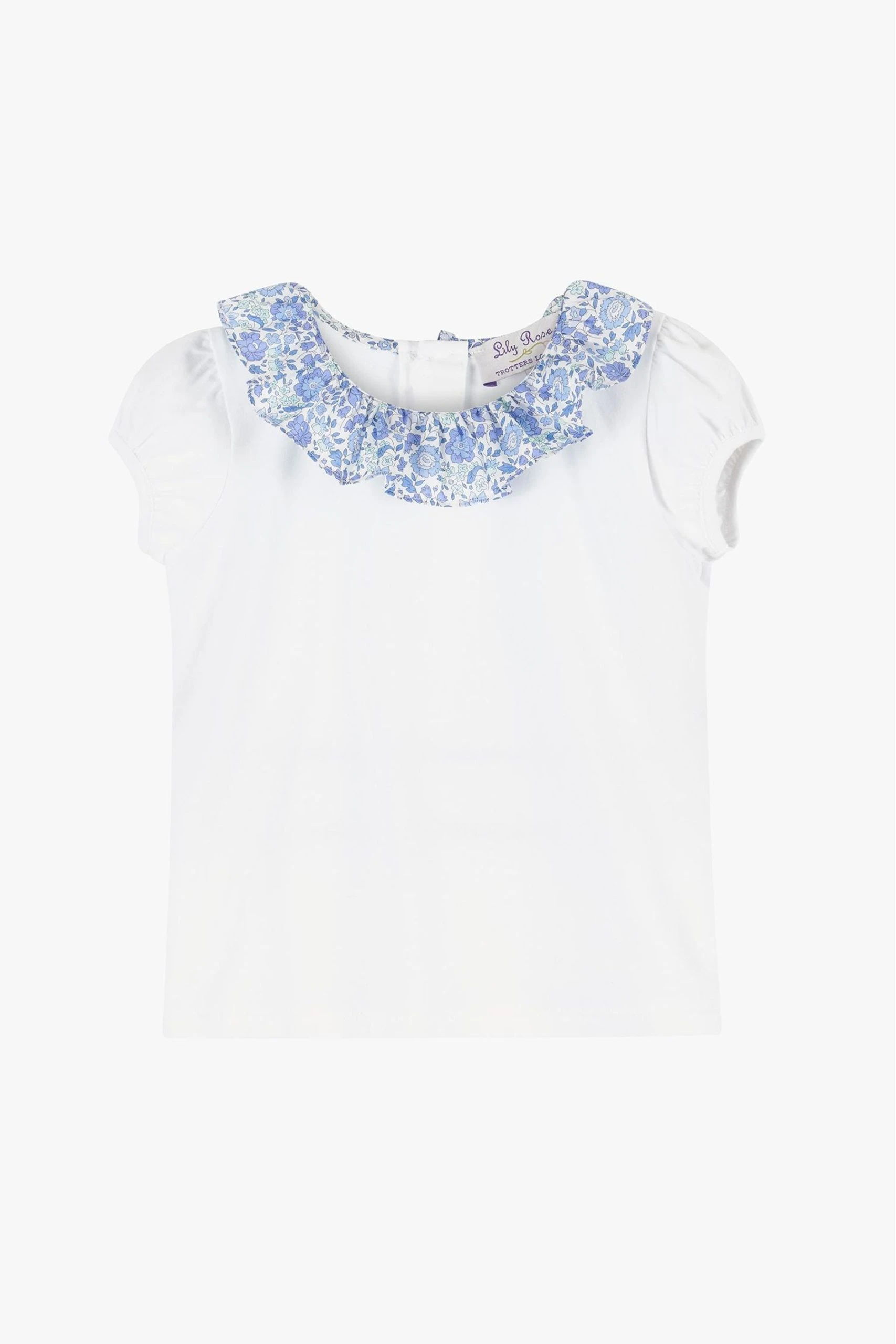 This beautiful white top is made in a supersoft jersey and is perfect for keeping cool during those hot summer months. For a bit of extra wow factor, its delicate willow collar is made in Liberty’s D Anjo print fabric, a classic 1930s floral design. Incredibly versatile, this top easily elevates any outfit and is perfect for pairing with shorts and skirts.