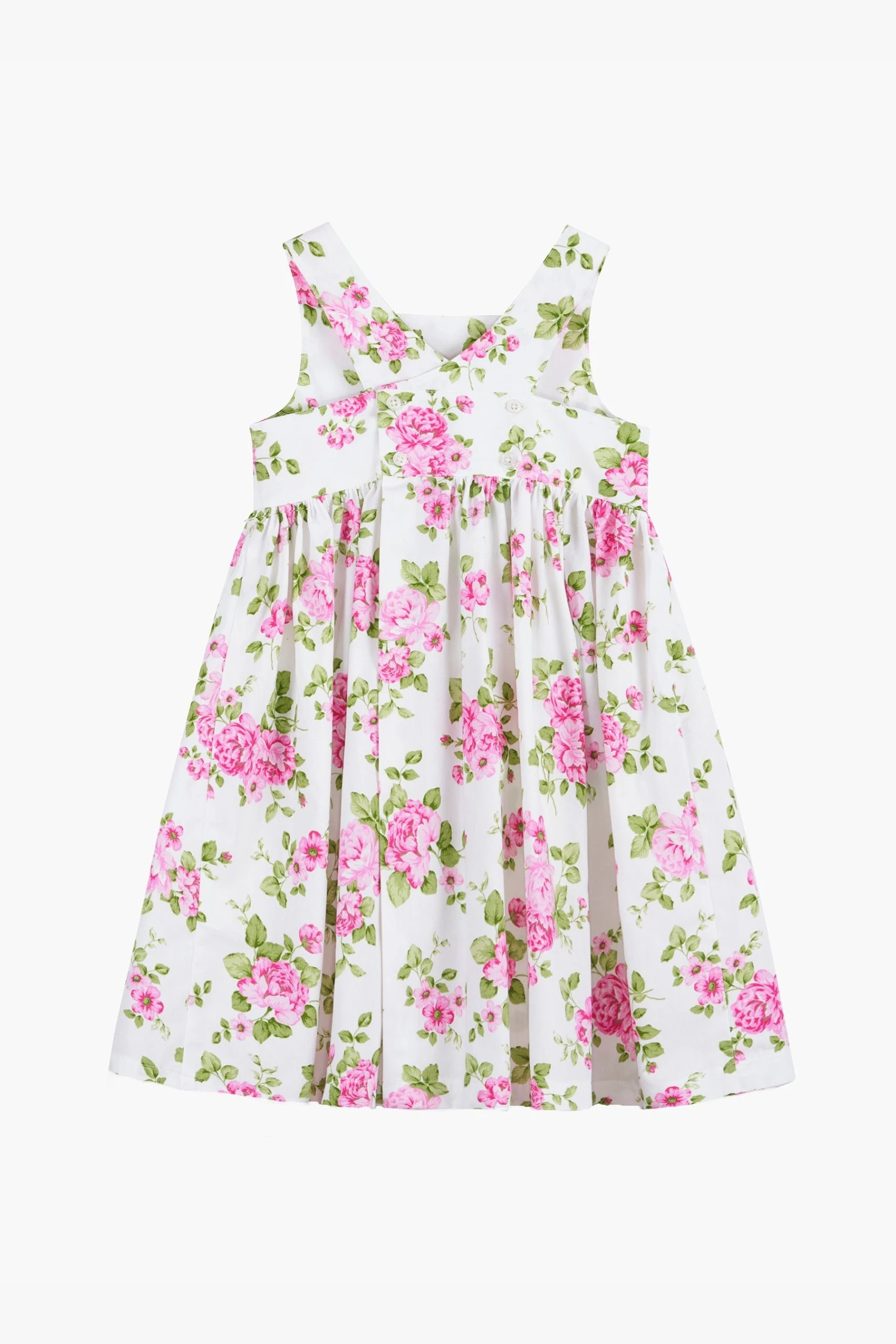 Made in our bestselling cross-back style, the Adelina comes in a beautiful selection of colourful prints this season. Featuring a classic A-line skirt, matching pockets and a pretty crossed back with pearlised button fastenings, it’s sure to become your go-to this spring/summer.