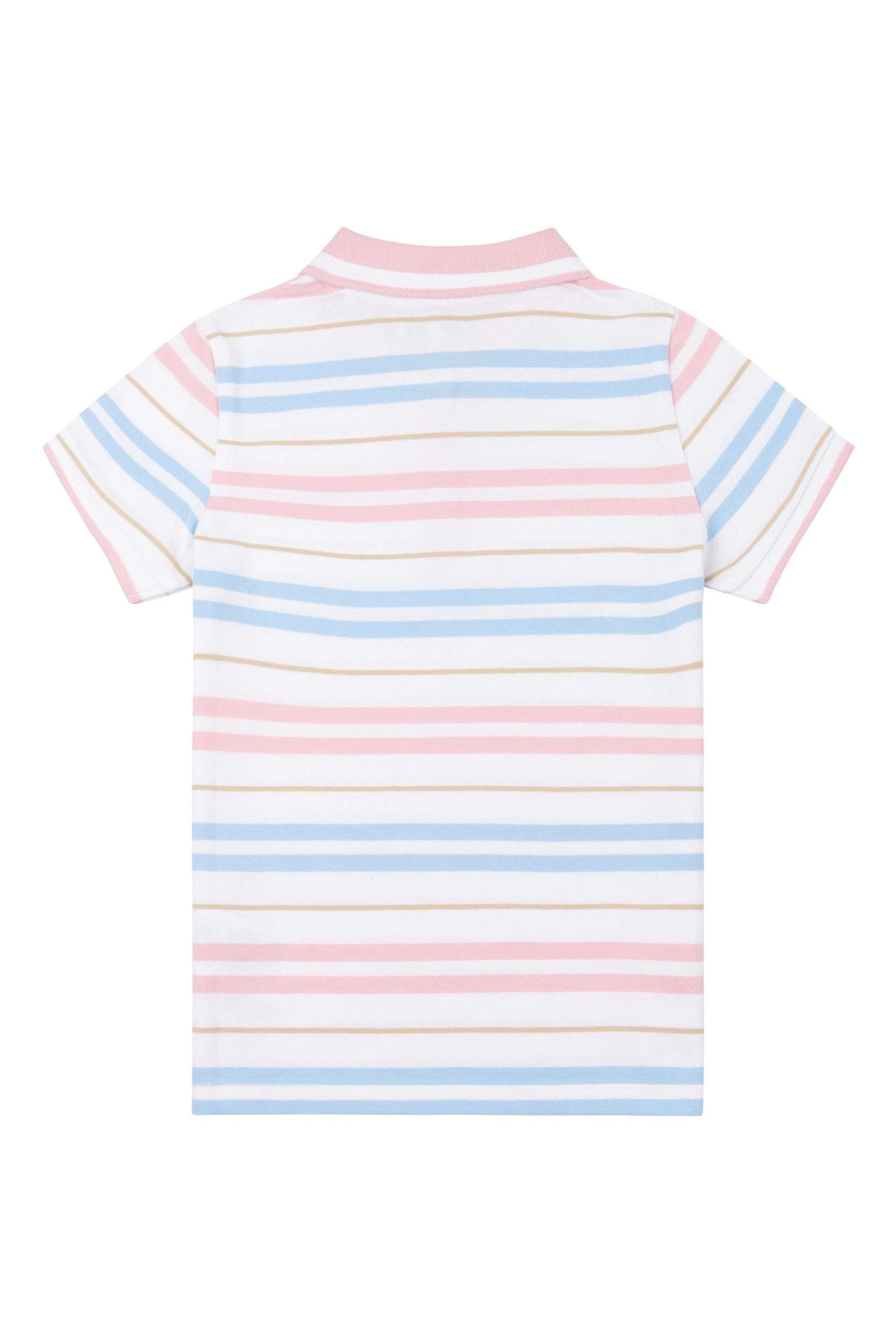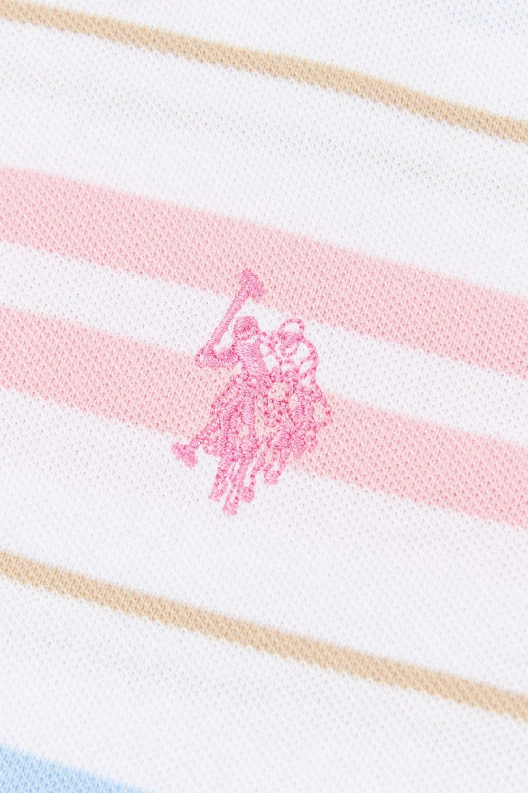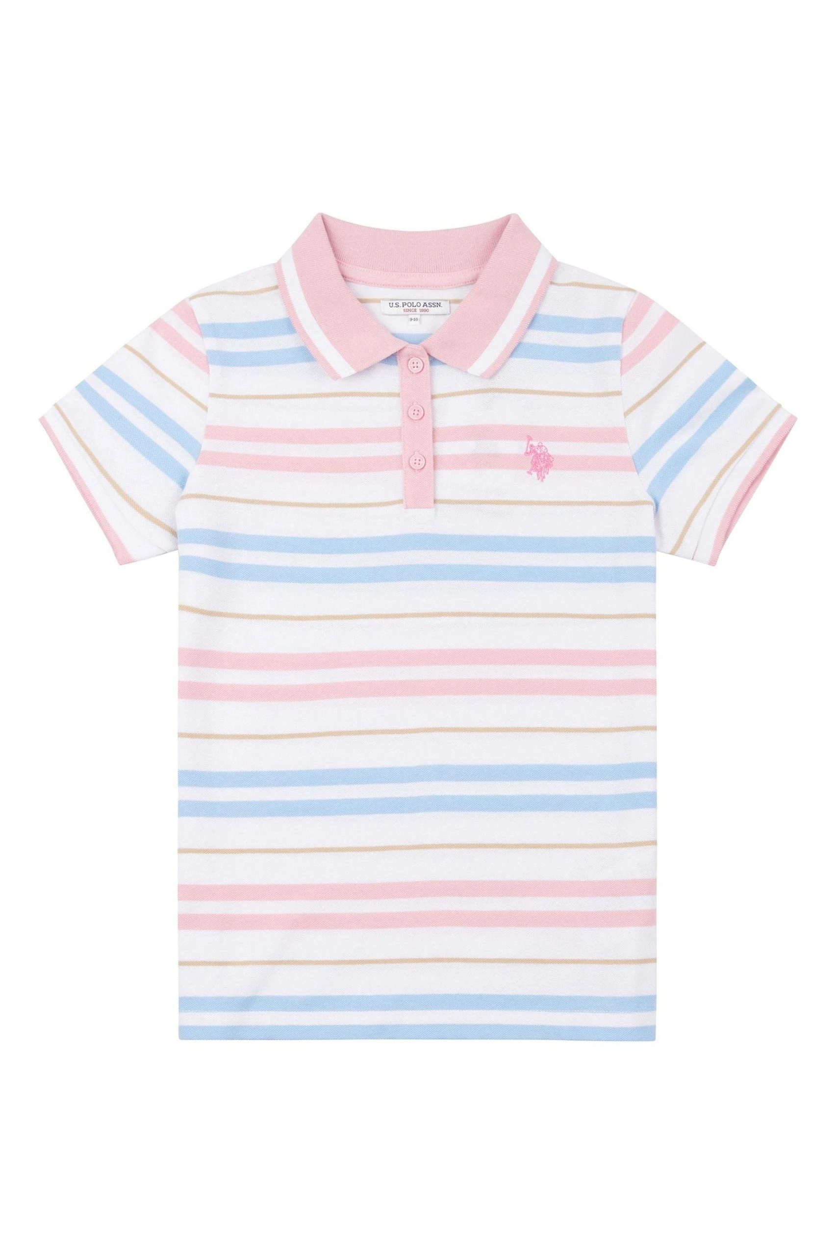 The U.S. Polo Assn. Girls Stripe Pique Polo is a short-sleeved polo made from 100% cool pique cotton in a summery stripe design. Featuring a fully functional 3-button placket, a ribbed collar, and cuffs with contrast tipping and split-level hem detailing. Complete with the double horsemen logo embroidered at the chest for the USPA stamp of authenticity.